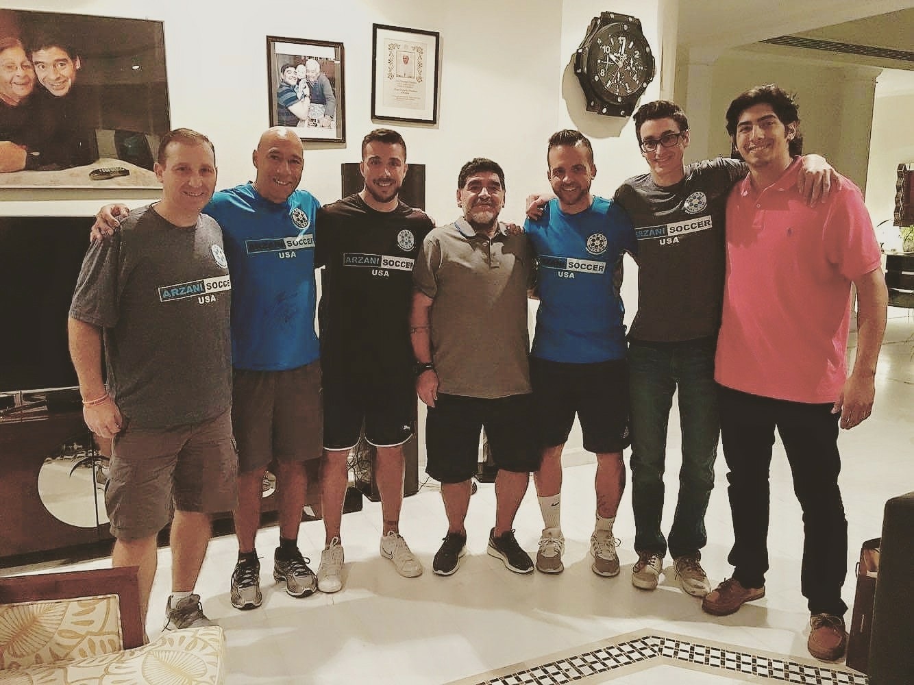 In traveling to the United Arab Emirates this past December, Arzani Soccer not only sought to expand its global education of the Beautiful game, but also to fulfill a lifelong dream of every boy growing up in Argentina: meeting Diego Maradona. Director Nick Arzani traveled with Arzani Soccer staff coaches Richard Martinez and Federico Santiago and Mariano Cocoz to meet with Maradona, arguably the best footballer of all time, at his own home in Dubai. The gathering was facilitated by Diego Lopez Maradona, and quickly became a surreal experience as the coaches engaged in a straight-shooting conversation with the soccer god who captained and led Argentina to win the World Cup in 1986.